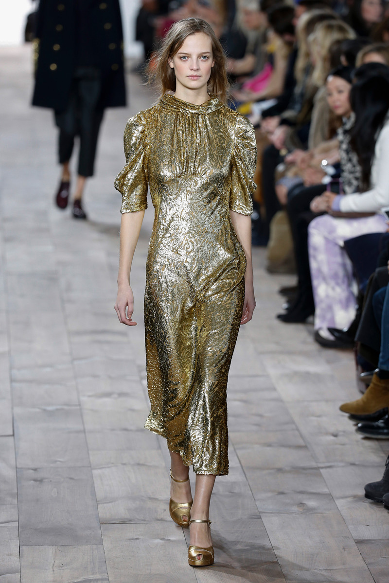 Sequins and shimmers for winter? Oh, yes! Take a look at Joseph Altuzarra, Michael Kors, Derek Lam and Rodarte to check out some new and unexpecting ways to integrate them into your winter wardrobe. And what about the metallic suits and dresses at Oscar de la Renta and Marc Jacobs, the almost floor-length gold swirling skirts at Ralph Lauren and J.Mendel’s glimmering dresses? It definitely lights up the long and dark days.