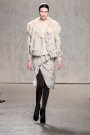 For the first time Jason Wu took his heritage – Asia – as a theme for his collection. Fall 2012 is all about Mao meets the Qing dynasty and Shanghai Express. Luckily no cliche-clothes, but a savvy and sophisticated collection. A belted, army green puffy jacket was quilted at the shoulders with a black lace overlay everywhere else except the big military pockets. Opulent embroideries, fur sleeves and collars gave the sharp tailoring a regal air. Variations on the cheongsam dress were beautiful precision-cut sheaths, some with alluring keyhole necklines, others with lavish embroideries. For evening, Wu recharged a Golden Age glamour silhouette with a strong shoulder, high neck and lean skirt that draped around the body with a dramatic slit.