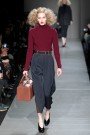 A return to the body, is what Donna Karan had to say about her FW2013 collection. Sensual, soulful and sculptural was the title. And it referred to the clothes that indeed reflected her sexy, bodycentric allure. Karan draped, twisted and slashed her jerseys in great dresses. There were also beautifully sculpted coats. Capes are a trend right now, and the designer did all kinds: asymmetrical and sweeping in jersey, built into a jacket, to the floor for evening.