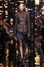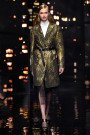 Donna Karan’s whole career has been inspired by New York City. For Fall she used the nighttime skyline as a backdrop for the runway, and made the blacks and grays of the buildings and the glinting golds of their lights her show’s central colors. Perched on platform sandals or boots, the collection’s long, lean silhouette owed something to the city’s new class of super-scrapers. New York is tall and getting taller. It’s a melting pot, too. Obi-like belts and origami folds on the one hand and opulent, burnished brocades on the other conveyed something of its multicultural glamour.