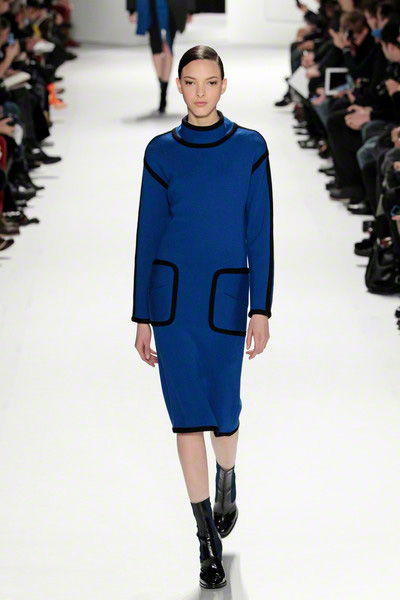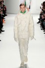 The theme of the Lacoste-collection, designed by Felipe Oliveira Baptista, was ‘an imaginary Antarctic expedition’. Well, it all came together on the morning snow-blizzard Nemo was expected in New York. It turned out to be a collection with a futuristic twist, not only about heritage (the label is celebrating it’s 80th anniversary this year). Baptista worked Lacoste’s signature cotton piqué fabric in new ways, sometimes mixed with jersey, leather and even foam. The overall feel was more structured. The collection also offered glacier and latitude-longitude prints on some outerwear.