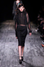 He opened the show with a full black look; a jacket and a skirt underneath which Manon Leloup wore a mesh top and a harness detail. A touch of bondage, yet still chic enough to fit the label’s heritage.
