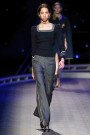 The daydream was interrupted by clunky ruffled leather pieces (jackets, belts, gloves); garishly colored long-haired goat jackets, and boots that stretched up the calf in cutouts and brown ruffles.
