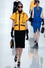 Michael Kors went for the urban and sporty for his fall 2013-collection. He took the yellow and orange from the New York streets and mixed them the city’s favorite dress-color: black. Many of the tailored pieces seemed built for speed with rounded shoulders and aerodynamic construction. Black patent trim and taped gave it all a vibe of fast sport like car racing. Kors also used all sorts of camouflage, most luxuriously in multicolor mink.