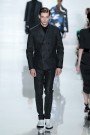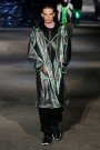 Yohji Yamamoto sent out an “Analog vs. Digital” collection for Y-3, contrasting the traditional with the modern. For women, it translated into a mix of materials, textures and lengths. A key look was a fitted sweater, puffer vest and neon plaid scarf worn with skinny pants and a transparent PVC kilt that was cut in half. Yamamoto’s men’s wear had more of a utility-meets-street vibe with a strong focus on outerwear.