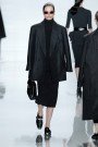 There was some Soviet influence in the fall-collection Calvin Klein presented. It was visible in the distinct military details, especially with the first few suits and dresses. Mostly in black and navy, they came in a faint plaid with vinyl inserts. Designer Costa made a powerful statement with lots of leather, accentuated shoulders on tailored pieces and several oversize silhouettes in stiffer fabrics. He countered this almost workmanlike sensibility with sexy bandeau tops that were wrapped in the back.