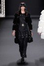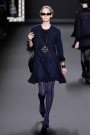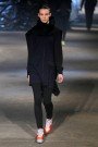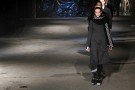 For the set of his show Marc Jacobs got inspired by the ‘Weather Project’ of artist Olafur Eliasson’s, a huge hot sun that shone intensely on the models. Jacobs started his show under the sun’s low frequency light that removed all color, everything seemed black, gray and sepia. Then the light changed and it revealed a beautiful palette of neutrals and soft colors, poink, blue, deep burgundy and green. It was a simple collection without any techno-fabrics. Jacobs choose traditional materials like cashmere and alpaca, silk and fur. For day there were chic skirt looks and coats in blue alpaca and pink cashmere.The shine came via an embroidered fishnet motif on sensual pajama looks, and fox-collared tulle jackets covered in big, loose paillettes, some over-sequined gowns.