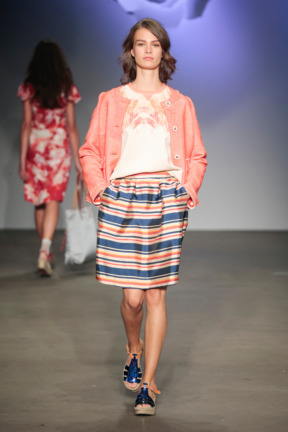 Little girls grow up. Not a woman in the audience that didn’t grow up with Oilily. The Dutch fashion brand, founded in 1963, is extremely well known in the Netherlands. Still the brand felt like it had to revive itself. During tonight’s closing night of Amsterdam Fashion Week Oilily presented it’s new me. They chose to show at the Transformatorhuis, no big commercial show. The collection was started by women who in the eighties and nineties grew up with the brand. They were given the title Friends of the Brand. Cheerful models paraded around in the colorful new spring/summer collection. A collection divided into three different mini-collections to fit women with different personalities. Clothes that put a smile on everyone’s faces, yet turned out a little less bright and busy printed than we’re used to from Oilily. Relaxed silhouettes, large floral and ethnic prints, eyecatching accessories. Elegant designs with a sportive touch. Richly colored and expressively printed, but in a way that felt fit for today’s modern woman. After singer Fay performed in between the models walking the finale it was time for champagne at the front row. Let’s hope Dutch women will embrace Oilily like never before. Judging from the first reactions the brand’s comeback has successfully started.