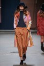 Different is beautiful if you ask Oilily. On Sunday night the Dutch fashion brand presented it’s fall/winter collection for next year, inspired by ethnic diversity. Diverse cultures, habits and preferences were translated into a bright colored feel good show. The upbeat collection was divided into three themes, a fresh take on the seventies, sportive luxury and a beautifully colored (in greens, reds and blues) selection. Each look worn with an optimistic and comfortable vibe. From the rainbow-colored co-ord to the Kimono inspired, belted and floral printed dress. Oilily might already be around for a while, there were lots of surprises throughout the collection. Color clashes (red and pink in the mix), material mixes (mohair and jacquard in one look), style clashes (a graphic printed woolen coat over a floral baby doll dress) and styling novelties (pleated pants, suspenders and chunky scarfs). Different and beautiful. And then there was a finally in which three drummers jammed along with DJ’s Sander Stenger and Joost van Bellen. A definite joyful experience, that had us all leaving with a smile and a note to ourselves to start wearing more color.