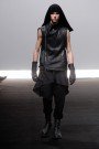All the right ingredients for the perfect Rick Owens cake were in the mix today. His signature black and white color palette, his sleeveless tops, the use of leather, the belted jackets and the long tops. But we were surprised too. By the models big hair to begin with, not to mention their snow proof Ugg like boots. Those tank tops will need a few extra layers, yet the big collars, the hoodies and the oversized gloves will keep the toned Rick Owens man warm all throughout next winter.