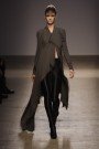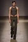 The show felt dark in many ways. The runway was hardly lighted, the models wore dark make-up and, as always with Owens, the clothes had a very dark edge to them. Yet we must say it was pleasant to see some earthy shades of green, gray and brown, in stead of all the black we saw last season. Owens even used a splash of metallic in some of his designs.