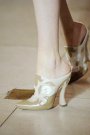 There were Philo’s signature leather structured tops, sweaters, T-shirts and tunics with a longer length at the back. They added a feminine touch to the straight pants and mixed very well with the pleated skirts. Balck suede shoes had high platforms – sometimes in contrasting color -, round toes and big straps.