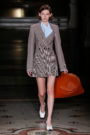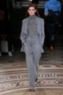 Stella McCartney made a demonstrative statement on womanpower yesterday with her fall-show by drawing from two very different sartorial motifs, along the way imbuing the clothes with a newfound daring. McCartney approaches her work as a creative problem-solver, delivering wardrobe solutions for real women. So the juxtaposed bravado of equestrian-inspired tailoring and pointy-bra constructions startled. McCartney’s update, both under sweaters and in actual constructions, put the focus clearly on the breasts in a manner atypical today. The message was loud and clear: Women are sexual beings free to express their sexuality as they wish. They are also powerful, opinionated and strong.