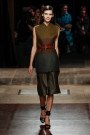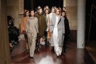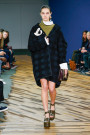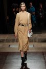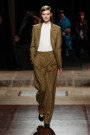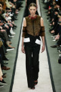 Not young girls walked the Chloé runway on Sunday, but grown women, sophisticad and elegant. Women with taste, who know fashion should be fun but wearable too. And so Waight Keller’s Chloé collection full of loose fitting designs seemed appropriate for women of any kind of shape and size. Strong woolen coats (in pastel shades), leather pants (in shades like nude and burgundy), and fur sweaters (in off white and mustard) were true winter pieces. Yet some of the creations (the second ruffled dress, an airy floral printed number with sheer star shaped patches and a printed skirt with sheer white blouse, to name a few) appeared a little too chilly, even for fall. With the brand’s minimalistic highlights behind us the more sober designs remained the strongest pieces out of the bunch. Apart from a rainbow leopard creation prints failed to make a big impression, while a navy dress with golden buttons around the collar seemed a little too forced. No, forget the party dresses and sheer sexiness; the Chloé woman is on top of her game rocking her every day, slightly oversized, wardrobe, which might not scream fashion, but can make any regular day oh so chic.