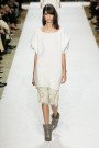 Despite the masculine elements in the collection — the oversize, man-styled trousers – Philo’s preferred emphasis was the tenderness of the clothes. That translated into pieces that were very much crafted by hand rather than manufactured. They were as sensual as the tweed knits that pooled extravagantly over platform sandals, as textured as the hazy animal prints. Philo underscored the importance of nature with the lush greenery that sprouted along the catwalk. She imagined her woman running through fields. The clothes themselves often felt bursting with life, with seams feathering and fraying.