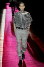 Gvasalia worked around formalwear and put tailoring on a pedestal, took away the rigidity of the classic corporate suit and breath some warmth and coziness into it. He delivered a slick, thought-provoking collection packed with tailoring — and comfort: Suits were cut loose and baggy — no restrictive tailoring here — while shirts were fully unbuttoned, flashing chest flesh. Coats were even bigger, boxy and long enough to stash an umbrella or two, and had the sharply exaggerated shoulders that Gvasalia is making his signature at the brand. Footwear came in the form of chunky soled sneakers, combat-style or rain boots.