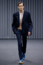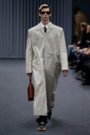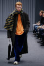 Gvasalia worked around formalwear and put tailoring on a pedestal, took away the rigidity of the classic corporate suit and breath some warmth and coziness into it. He delivered a slick, thought-provoking collection packed with tailoring — and comfort: Suits were cut loose and baggy — no restrictive tailoring here — while shirts were fully unbuttoned, flashing chest flesh. Coats were even bigger, boxy and long enough to stash an umbrella or two, and had the sharply exaggerated shoulders that Gvasalia is making his signature at the brand. Footwear came in the form of chunky soled sneakers, combat-style or rain boots.