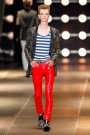 Hedi Slimane’s second menswear-collection for Saint Laurent was an ode to an imaginary band of beanpole Teddy Boys. Hair slicked back into ducktails, tight pants hitched to the navel.