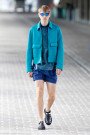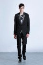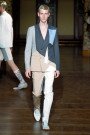 School-uniforms and a bad school-boy where the theme behind the Monsieur-collection of Viktor & Rolf. The result was a streamlined and boyish collection with a new suit shape, pairing a cropped jacket with skinny trousers or shorts. The school-boy theme was also visible in the patches on black jeans, the jersey blazer with blue nylon stripes inspired by college scarves and the bomber-jacket.