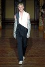 Concrete caught by the fuzz. Grayed-out and foggy marls were key for fall 2013. Brushed mohair, heathery and airy fleeces, compact felts and tarmac shaded double-face and bonded materials. This all added up to strange and sculptural beautiful cloths. Asphalt fleece and mohair knits are paved with iridescence at Alexander Wang, Stella McCartney wrapped her models in pinstripes, where Céline knotted hers in felt touch woolens. Monastic tunics at J.W. Anderson and fossil florals at Ports 1961.
