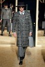 Who says fall collections have to be all about brown, grey and black? Paul Smith proved even prints and bright colors fit perfectly for an autumn collection. He showed suits in shades of mustard, red, flamingo pink and turquoise. Pairing a red pair of pants with a mustard jacket and combining different shades of blue in one office look. He introduced multiple colored houndstooth sweaters, a single Mondrian inspired creation and psychedelic prints popped up on a shirt and a winter coat. Models looked both confident and comfortable in the perfectly cut menswear designs. Sir Paul Smith’s ever growing Asian fan base won’t be disappointed and neither are we.