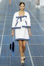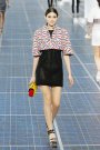Chanel’s image for spring started off with classic looks; skirt suits and strapless dresses decorated with pearls. Pearls that kept popping up throughout the entire show. A show filled with renewed loose fitting Chanel suits.