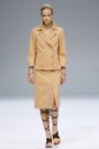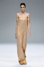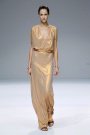 Belgian designer Veronique Branquinho returned to the fashionworld yesterday with a show, three years after filing for bankruptcy. The designer, who recently presented a lingerie collection with local label Marie Jo l’Aventure returns with a slightly lower-priced collection. Branquinho works together with Italian clothing manufacturer Gibò, who has reportedly also invested in her company. In Paris she showed a chic collection with long fluid dresses in beige – sometimes with a golden touch – suits and shorters shifts that reminded of modern day goddesses. It was less edgy than what she used to present in her early days and what we liked about her collections. But growing up probably also means you have to leave the edgyness behind, but please stay away from the safe side.