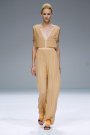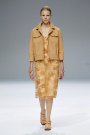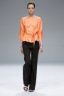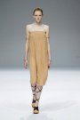 Structured looks followed each other on the runway. Dresses had architectural skirts and graphic shoulders. Pieces were folded, in line with the origami trend we spotted at some many other shows. And the Eastern influences continued in a kimono style gold printed top.