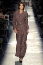 New Vintage, was the name of the haute couture collection Karl Lagerfeld presented yesterday. Because Vintage is soooo depressing Lagerfeld thinks. New Vintage is something to come, he states. Well, the clothes had a 1940’s line—broad shoulders, swingy coat, cape backs—in a color palette of black, gray, silver, and dusty pink that spoke of film noir interiors. The hair also had a forties flavor. The spine of the collection was suits, he paired them with sparkling legwear and wove silver through his “tweeds.”