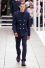 Kris Van Assche’s collection for Dior Homme was entirely in blue, the metal buttons and white/blue striped sweaters aside. Van Assche, in his methodical way, set out to present what he called “a complete wardrobe.”