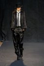 Tough, funky, crazy, grungy, four words to describe the Jean Paul Gaultier that was a little bit of everything. The French artist showed suits, leather jacket, lots of coats and some evening dressed.