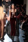 Inspired by drawings of Aubrey Beardsley (an influential illustrator and writer in the late 19th century) Bill Gaytten came up with luxurious ensembles for English women. His models were all dressed up in asymmetrical capes and dresses with enormous collars, large gloves and feather fascinators as their accessories. Especially the delicate designs in pleated satin and embroidered sheer fabrics appeared graceful. Done in shades of olive green, cinnamon, light mint and ruby red they seemed perfect for winter. And even though you could see every bit of the models’ bodies through them it still made the girls look classy.