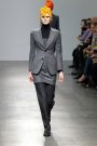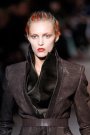 It is the second season April Chrichton is designing the collection for the house of Sonia Rykiel. This spring it’s about bold colors and style, but for next fall it’s less loud, more simple and pared down. Like the skirtsuits with a kick flare to the skirt, shrunken jackets, jumpers and little black skirts. Shades were mainly black, white and biscuit. For eveningwear the Rykiel-girl shows her flirty side, with floaty dresses, sometimes in sheer black or with puffy little sleeves.