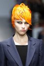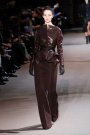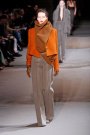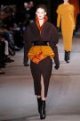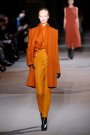 Again Haider Ackermann presented an intriguing and beautiful collection. Ackermann’s sent out an message of power-chic fueled by both dark and artful undercurrents. A lean, even severe silhouette dominated, sometimes cinched with a sharply geometric corset belt. Ackermann incorporated serious volume and a fascination with the lower torso. This resulted in tiered and sculpted peplums, hip adornments and leathers that pushed out from the waist to be cut away into dramatic front tails. Ackermann softened it up with hooded coats and long dresses. The colors were magical, with oranges, reds, blues and purples against earthy neutrals.