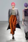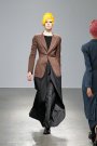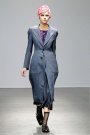 Watanabe’s outerwear had trenchcoats with volume, as well as a trench-cape and a few blazer coats, which looked as though he stitched together a fitted jacket and a skirt in the same fabric.