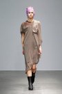 What followed was a series of turtlenecks and enormous collars which came up to the models’ ears. Then a couple of printed asymmetrical dresses popped up, giving this collection it’s signature look.