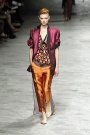 Haider Ackermann proved once again he’s a true master in choosing strong, bold colors, picking luxurious fabrics and mix this into a graceful, powerful an dazzling collection. His ss2012-collection is about ‘rockabilly barons’ and – so it seemed – his own personal style in an exaggerated way, looking at the and the wide drop-crotch pants that tapered.