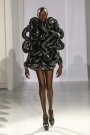 What to think of a halter-dress made from what appeared to be a distended skeleton? Or the shiny black tubes that enveloped another mini-dress? Van Herpen presented old and new work, but it all morphs easily into one collection, the difference lies into the techniques, use of fabrics and themes. But what stays is her impressive dark techno style that’s original, exciting and fresh.