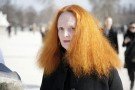 The Alexander McQueen-collection was an ode to The Ice Queen and her Court. Sarah Burton – who’s talent and character keeps the McQueen-house alive and kicking – gave her heroines a colorless faces and small, metal-covered heads. She build the collection slowly, using white, black and lilac and a very McQueen silhouette. It was molded, strong, and sometimes fitted like a harness. To avoid a too tough and edgy impression Burton tempered it wit hand-made silk and wool tweeds with litlle pieces of mink and fox.
