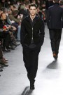 Van Assche came up with perfectly tailored menswear, yet it was nothing too unexpected. His models wore light grey suits with turtle necks, woolen cardigans, black capes and very minimalistic coats. The pants were loos-fitting and most minimalistic looks were accessorized by large (Western-inspired?) hats.