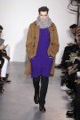 Before the show of Raf Simons even had started, rumors about the designer leaving his commercial partner were already spreading around. And the rumors seemed true, but did not affect the show and the collection at all. Simons sent out a calm, yet inventive collection with a mix futurism (pants in black PVC, mohair aprons) and preppy college style (sweaters, checks, Fair Isle knits). Duffel coats, in camel and brights, were the main statement. One voluminous version came in purple neoprene – worn with a sharp shirt and tie and a scarf – while another cocoon-shaped design in tomato red fastened with a single closure at the neck.