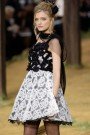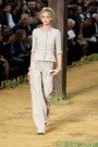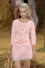 As soon as the audience noticed the stage at Chanel – a barn and a haysteck were Lily Allen performed – it knew what the Chanel-show would be about. Ultrachique farmergirls in playful dresses, swirling skirts and tough jeans wearing Chanel-clogs and scarves around their head. Colors were classic-Chanel: white, marine, red and pastelshades of pink. The famous Chanel tweed was woven as there were little pieces of hay sticking out, the jeans looked old and repaired, some dresses seemed handknitted. This was a very cheerful Chanel-collection, young and upbeat and far away from the classic two-piece suit.