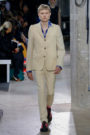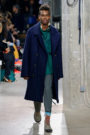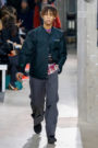 Piccioli did not go down the punk route of safety pins and mohair sweaters. He gave the lineup a collegiate feel by pairing the outfits with sweaters worn over shirts with slim black bow ties. Shrunken suit jackets looked like they had been outgrown, while off-kilter shades like pastel green and pink gave duffel coats and workwear jackets a confident flair.