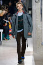 Outerwear had an artistic bent, as in a big black cape that looked as if it had been molded from paper mache while a black leather jacket that was inset, Matisse-like, with triangular bits of blue. The plaid on a duffle coat went every which way, as if the pattern had been shattered — and later reassembled. Knits were interesting, too, with many of them truncated at the waist to reveal more plaid shirts. Trousers veered between the slim and the oversized, with chinos pre-wrinkled with big cuffs.