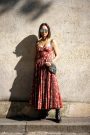 Rousteing diluted the impact of some dresses by adding panels depicting wolves, the wolf designsalso returned on T-shirts that anchored a boho rock star wardrobe of maxi cardigans, eyelet-studded leather and thigh-high boots.