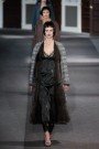 That was grunge-de-luxe what Marc Jacobs designed for Louis Vuitton. A bit ironic and provocative, but in a beautiful and sensual way. And melancholic. The set was a circular “hotel” constructed within the vast tent pitched in a Louvre courtyard. The wallpapered corridor housed 50 closed doors which the models opened and exited. The audience became voyeurs, as each “room” featured projections of hotel guests lounging and getting dressed, unaware of the scores of peering eyes.