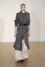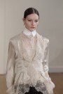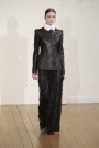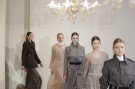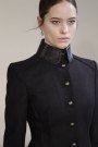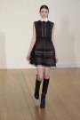 The Philosophy di Alberta Ferretti-show had the familiar boy-girl thing, but looked also very romantic and almost Victorian with the long dresses, high collars and black lace over white. Fragile dresses with high, white collars were mixed with polished, tailored officer’s coats in wools and thick leathers