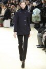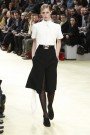 So expectations were high for her second collection. But as Philo said in her interview with T-magazine, she continued her work with great investment pieces in the best fabrics and in her signature clean, sophisticated cut. No frills, but deep blue coats instead, tailoring, short jackets, skinny pants, white (lace) shirts and leather pockets as a contrasting detail at A-line skirts. Ultra-chique and a winner were the white lammy capes. Simple, but feminine.