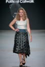But there was more to the program, as there was the Encouragement Award to be handed out. CĂ©cile Narinx, editor-in-chief of Harper’s Bazaar, was one of the judges. “Uniting fashion and politics is just as hard as trying to merge the north and south pole. Most politicians generally play it safe when it comes to the clothes they’re wearing. Which is a pity, because the way you look can really underline your story and your political statement. You can use it in smart way. These kids made an brave attempt to bring those two separate worlds together throughout their designs. As a judge I will pay attention to movability, personality and, of course, if the political message is well translated.” According to the judges, it was Gaby Reiman’s bike tire skirt design who succeeded to do this best. Nonetheless the question still remains– will fashion and politics ever fully join forces? It’s up to you to mark your cross.