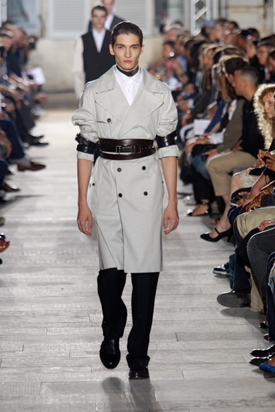 The collection consisted of shorts (as seen in many other collections), casual jackets, shirts, trenchcoats and belts which gave it all a sporty touch. Nice details: the reflecting spots at the back of jackets and the colored soles of the shoes.